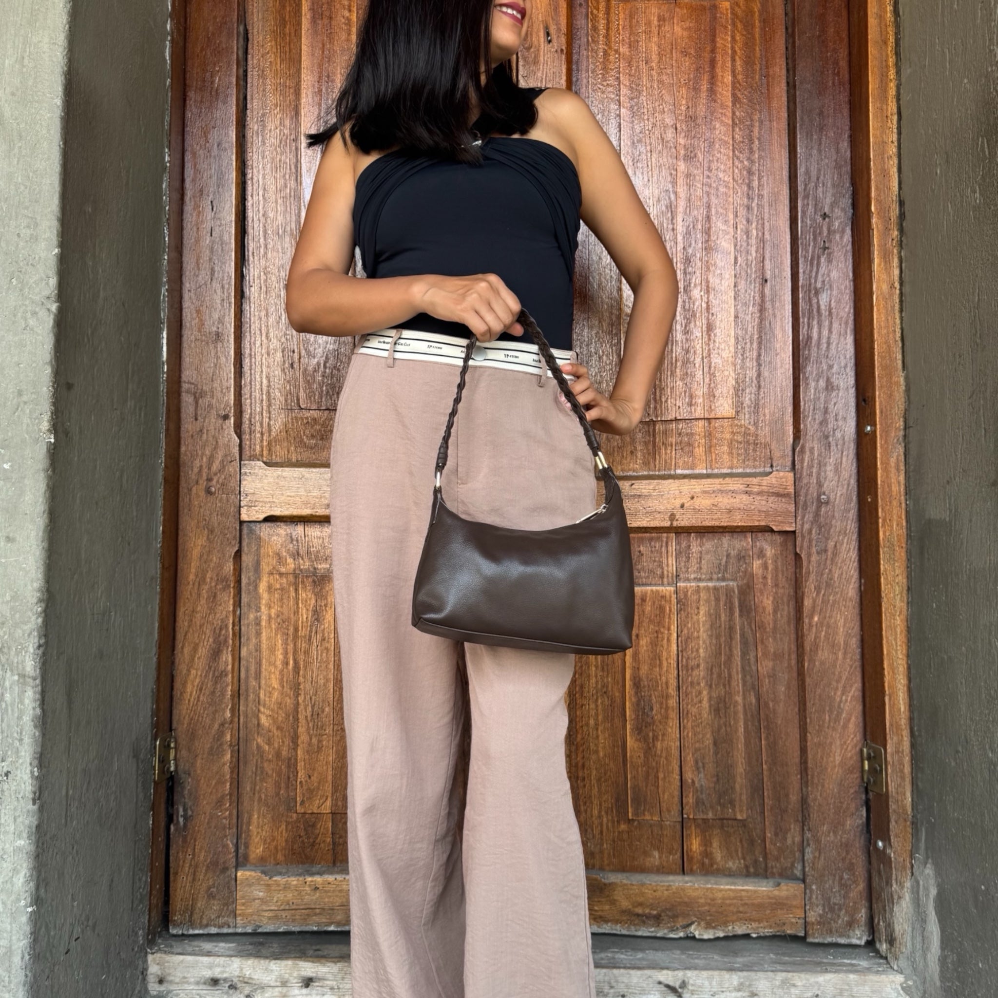 Nuestra cartera Penélope combina tradición y moda, para que puedas lucir un artículo que representa nuestra tierra combinada con un diseño asimétrico espectacular.